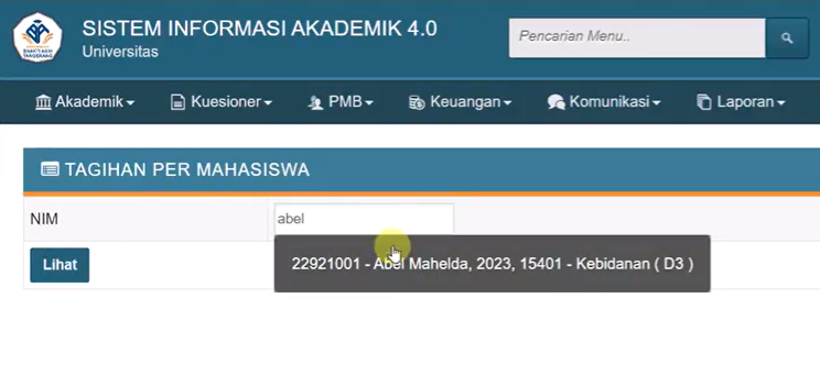 Cek Data Tagihan Per Mahasiswa