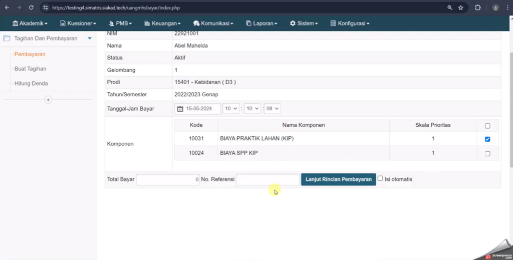 1. Klik Lanjut Rincian Pembayaran.