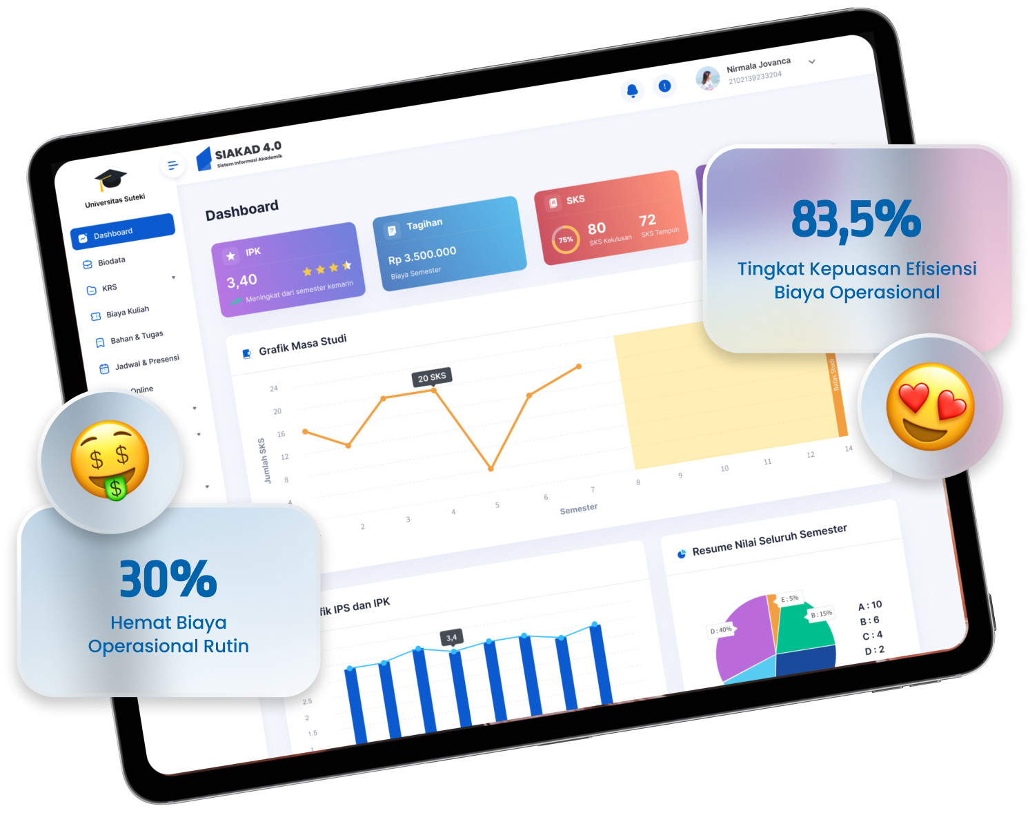 Selain membantu memperlancar dan mempercepat operasional harian, penggunaan SIAKAD Mataer Cloud juga dapat membantu perguruan tinggi untuk menghemat biaya operasional rutin hingga 30%